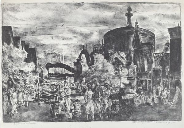 Clifford Addams made this etching, Herald Square: Nocturne, with ink on paper. The composition is all about these scratchy, nervous lines, the artist captures a real sense of place. It's like he's trying to pin down the energy of the city. Look at the way the ink creates depth and shadow. The architecture is looming, but it's the figures in the foreground that really pull you in. See that little kid with the huge eyes? Something about the expression just grabs you. Addams is a master of texture, using different densities of lines to suggest everything from the damp city streets to the soft fabric of someone's coat. It reminds me of Whistler’s etchings of London. Ultimately, it's this embrace of ambiguity that makes the work so compelling. Like any good piece, it raises more questions than it answers.
