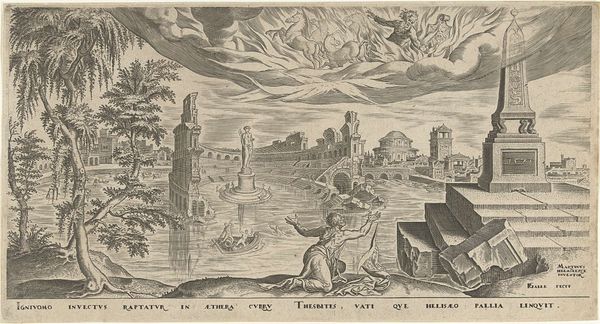 Philips Galle created this engraving titled 'The Pyramids of Egypt' in the late 16th century. Dominating the landscape are the pyramids themselves, symbols of immense power and the eternal afterlife for the pharaohs. Note the obelisks, their pointed forms reaching skyward—ancient solar symbols representing stability, creativity, and procreation. Consider the recurrent motif of the obelisk, a form that echoes across millennia, from ancient Egypt to the Washington Monument. Their silhouette can also be seen in the steeples of Christian churches, demonstrating our collective subconscious yearns for connection with higher powers, and the desire to immortalize earthly existence. The pyramid form itself is interesting. It represents a desire for stability but the heavy, symmetrical shape also conveys a sense of oppression. The sheer scale of the pyramids invokes awe, but also the human cost of their construction. This duality engages us on a primal level, evoking both reverence and a profound recognition of our own mortality. The symbols of power and eternal life are deeply rooted in human psychology, reflecting our continuous negotiations with life and death. The image represents not just a historical monument, but a mirror reflecting humanity's enduring aspirations and fears across time.