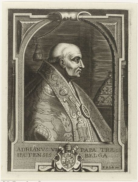 Curator: We're looking at a striking portrait of Grégoire de la Forge, rendered as an engraving by Gérard Edelinck sometime between 1697 and 1707. The work belongs to the Rijksmuseum collection. Editor: My first impression? It's serene, almost otherworldly, yet the man's gaze feels incredibly direct. The detail in the engraving is exquisite, particularly in the texture of his garments and the oval frame that contains him. Curator: Edelinck was a master of the burin, elevating printmaking to an art form admired by the French court. Consider the institutional power at play – a printed image circulating the likeness of such an important religious figure solidified his position. Editor: Exactly. And it reinforces visual hierarchies. Notice the placement of the emblem at the base – a subtle but crucial affirmation of authority, mirroring the opulence often depicted in painted portraits of the period. There is this sense of "manufactured" reverence for institutions, rather than for people. Curator: Precisely! Edelinck capitalizes on realism, employing incredibly fine lines to articulate volume and shadow. But this wasn't simply about likeness; these images served very strategic functions for de la Forge and the Church. The man was General of the Order of the Holy Trinity! Editor: I agree. How are the themes of redemption, power and control wrapped in an image distributed to be kept or gifted as objects that carry meanings from generation to generation? Look at the slight smile that indicates that even as an almost robotic entity. There's this deep question in what he knows of himself. What does that even mean in his current standing? Curator: That gets to a key point. Prints allowed for a dissemination of power impossible before. They functioned as political tools, visual declarations that helped establish dominance and influence far beyond the individual. Editor: Absolutely. When viewing it today, one must remember that every carefully etched line in this image had—and continues to have—an intended consequence. I would say that those historical implications still impact power dynamics nowadays. Curator: I am thinking about those themes today as we move into a more equal society and what "the new figures" will represent. A revolution for our views, I must add. Editor: To conclude I wonder, will "the new" remember to remember? Will the engravings made after be an actual attempt to level the playing field? I really hope that those lines create safe pathways for generations to come.