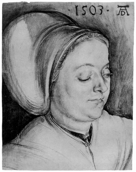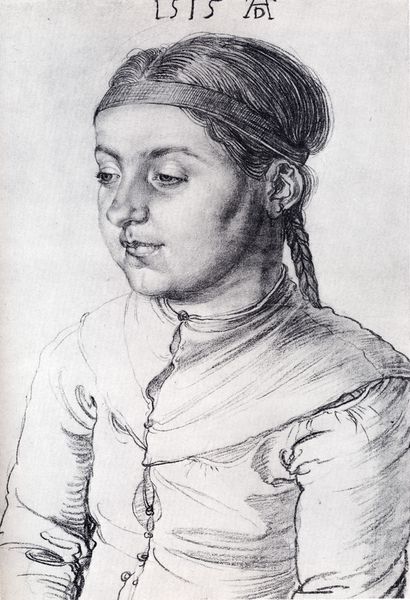 Editor: This is Albrecht Durer's "Portrait of a Girl," a pencil drawing from 1515. It has such a serene, almost melancholic quality to it, don't you think? I wonder, what draws your eye, what stands out for you when you look at this work? Curator: The vulnerability, absolutely. Dürer captures a fleeting moment, almost as if he's drawn a whispered secret. But look closer. Notice the head ornament – the detail suggests status, perhaps even a story wanting to be told. But the softness of the shading in her face gives me pause. What is it about a simple pencil sketch that evokes such immediacy, eh? It makes you wonder what else she was thinking! Editor: The detail in that head ornament *is* stunning, especially considering it's "just" a drawing. So, is the expressiveness just a factor of Durer's technique, or are there conventions of portraiture at play here? Curator: It's both, of course! Dürer was a master observer, capturing light and shadow with incredible nuance. But, remember, portraiture in the Northern Renaissance was about more than just likeness. It was about conveying social standing, character… even aspirations. Maybe that serene melancholy you observed is the artist attempting to represent her "inner self," perhaps. Editor: So it's like a window into her world, or at least Durer's *interpretation* of it. Fascinating! I'll never look at a pencil drawing the same way. Curator: Precisely! That's the magic, isn't it? How lines on paper, crafted by a genius five centuries ago, can still stir something within us. I find myself pondering her fate - the unknown narratives of ordinary lives.