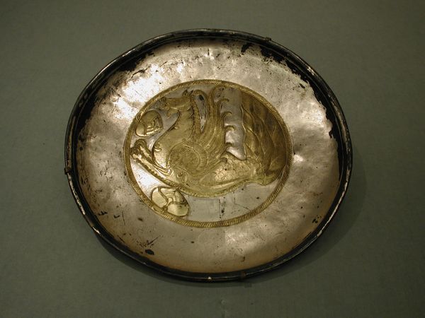 Curator: This delicate glass bowl, crafted around 50 BC, was unearthed from a grave on the island of Siphnos. Look closely, and you can see the intricate, almost ghostly designs etched into the glass. Editor: It has such a fragile presence. The faint images give it an ethereal feel, like glimpsing a memory. And those images! A horse, a rider, and a serpent–it’s a miniature world contained in glass. Curator: Absolutely. The process of creating such a piece, likely through mold-blowing and then painstakingly engraving these details, speaks to incredible skill. We must also consider the socio-economic status of the person buried with it. Glassware, especially of this quality, would have been a luxury item, reflecting status and perhaps specific beliefs about the afterlife. Editor: The serpent particularly captures my imagination. It coils around the bowl in a way that evokes both danger and protection. In ancient Greek symbology, the serpent had varied meanings – healing, rebirth, but also chaos. It would be intriguing to know why this symbolic figure was specifically chosen. The rider and horse—they add an interesting dimension too. A horse, of course, suggests status, but the small rider implies power on a small scale, or the triumph over such powerful beasts. Curator: I think your reading of the serpent’s duality is insightful. And seeing as this was found in a grave, we can likely add funerary symbolism to that complexity. However, it is not just about abstract readings. The craftsmanship matters—the specific type of glass, its origin. Studying these materials offers a tactile connection to the artisan’s world, offering insight to their technical knowledge and trade networks operating then. Editor: It's a dance between the practical and the symbolic, isn’t it? Thinking about who commissioned the bowl, and the artisan’s hands carefully shaping and etching, gives this delicate bowl a remarkable emotional weight. What stories could this small bowl tell? Curator: Indeed. It’s an artifact that reminds us of the intricate links between the material world, cultural symbols, and human belief in a past society. Editor: I’ll remember the emotional weight and imagery carried by the craftsmanship itself, reflecting continuity of artistic knowledge from artisan to artisan across centuries.
