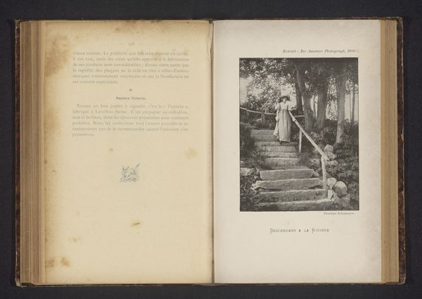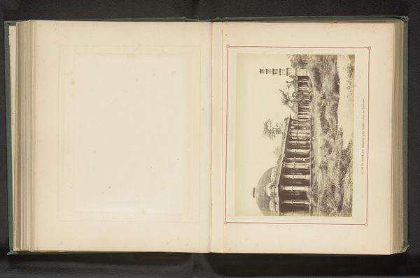 Curator: Here we have a page from an anonymous sketchbook, dated to before 1898. It depicts the Scala Santa, the Holy Stairs, in Rome. Editor: It's a bit ghostly, isn't it? Those steps recede into a shadowed distance. Gives me a slight shiver, almost like looking into someone’s memory. Curator: What’s fascinating is the way it is bound in a personal sketchbook—materials bound together, experiences preserved in a unique handmade format. The paper itself has aged, which provides an additional depth to the impression of viewing the drawing. Editor: Absolutely. You can almost smell the musty paper. And the choice to depict it in a sketchbook… I wonder, were they thinking of the labor it took for pilgrims to ascend those steps on their knees? There’s a tension between devotional act and human cost. Curator: Or perhaps it was just a quick study, a capture of a moment while traveling, meant to capture an experience of visiting such a place as an artistic or devotional expression. I like that we only have a small part of that story. Editor: I'm struck by how the image contrasts a specific location like the Scala Santa with more abstracted human notions of memory, place, and work in this printed personal document. I wonder if the book contains other notes or travel observations... it changes the stakes and reception. Curator: That really reframes how I’m seeing the work now—almost a little melancholy, thinking about the journey behind creating this little sketchbook page and our distance from that traveler today. Editor: It reminds us that even the most venerated sites are built and experienced in deeply human, deeply material ways. Curator: It's really more than just a picture of some stairs. Editor: Definitely food for thought on how we see and value historical locations.