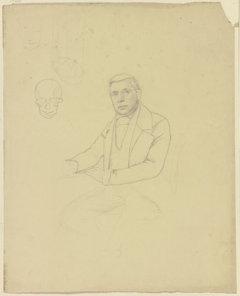 Sanford Robinson Gifford made this drawing, "Head of a Man, with Various Studies," with pen and brown ink on cream laid paper, sometime in the mid-19th century. The disembodied eyes, floating heads, and rudimentary figure studies point to the academic practice of learning to see and represent the human form. In the 19th century, art academies played a central role in shaping artistic production and taste. This drawing gives us a glimpse into the social conditions that shaped artistic training. Students would learn to draw by copying from plaster casts and from life models before attempting their own compositions. We see the legacy of the old European academy in the emphasis on anatomical accuracy. We also see its democratization in the variety of faces rendered. To understand this drawing better, we might research the curricula of the art academies in which Gifford trained. Doing so would reveal the social and institutional context that shaped his artistic vision.