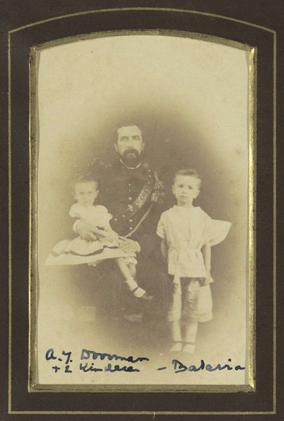 This vintage photograph by Gerard Stoof features an unknown man and boy in a formal composition. The limited sepia palette and the textured surface create a feeling of distance, while the arrangement of figures provides structure. The man stands with a subdued confidence, his dark suit contrasting against the lighter backdrop. The boy, perched on what appears to be a faux stone ledge, wears a sailor suit, a common motif representing youth and aspiration. Their proximity suggests a familial bond, yet their expressions hint at a detachment. The photograph’s composition draws the eye towards the faces, but the degradation of the print disrupts any clear narrative. This tension between clarity and decay, presence and absence, invites speculation about the sitters' identities and their place in history. Ultimately, Stoof's portrait serves as a visual artifact. The formal qualities prompt reflection on the passage of time, and the transient nature of memory.