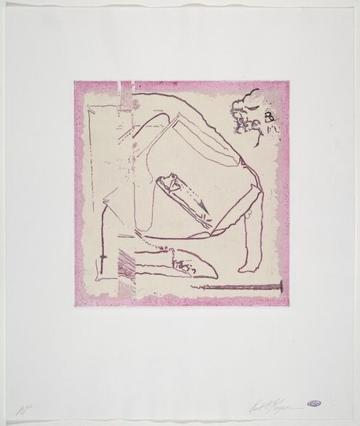 Curator: Ceri Richards created this depiction of "Prometheus," and what strikes me immediately is its graphic simplicity against that bold yellow background. It feels so immediate. Editor: Yes, the figure of Prometheus bound is particularly striking. One cannot help but think of the legacies of colonialism and enslavement, where bodies were similarly restrained for daring to challenge power. Curator: Absolutely. The composition stages a powerful tension: Prometheus, the defiant bringer of fire, is literally pinned down by the eagle—a symbol of Zeus's authority. It’s almost theatrical in its stark presentation. Editor: The starkness almost lends it a modern feel, even as it draws from classical myth. And the figure poised with bow and arrow, is that Heracles? I wonder what Richards was trying to say about systems of power. Curator: It does invite pondering. It's a reminder of the continuous struggle against oppressive structures. Editor: True, this stark image really makes one think about those struggles, then and now.