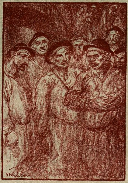 Editor: Here we have Käthe Kollwitz's drawing "Solidarity" from 1932, a graphite work depicting four figures huddled together. The mood is somber, almost fearful. What can you tell me about this piece? Curator: The raw materiality of graphite on paper is central to understanding Kollwitz's intent. The medium itself speaks of accessibility and directness. Consider the social context: Germany in 1932. This wasn’t a commission for the bourgeoisie. Editor: So, the choice of graphite suggests a conscious decision about accessibility and perhaps even a political statement through material? Curator: Precisely. Graphite allowed Kollwitz to mass produce prints from her drawings, making her art available to the working class. Furthermore, the visible labor—the dense hatching, the forceful lines—it mirrors the physical exertion of the working class. Editor: The way you describe it, the drawing almost becomes a document of its own production. Is the technique itself a form of solidarity? Curator: Exactly! The technique, the material, and the subject matter coalesce. The image is not just of solidarity; it embodies it. Even the support—likely inexpensive paper—reinforces this. Where do you think these materials came from and how would that change the interpretation? Editor: I hadn't considered that before, I see how the materials aren't neutral, but actively contributing to the work's message. Curator: The production and circulation are just as crucial as the imagery itself in understanding its powerful statement. Editor: That makes so much sense. I’ll never look at a simple graphite drawing the same way again. Thanks!
