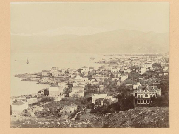 Editor: This photograph, entitled "Stadgezicht van Ajaccio gezien vanaf een hoger gelegen gedeelte" – that's "Cityscape of Ajaccio Seen from an Elevated Position" – was taken sometime between 1886 and 1896. It captures the French city using photography. The muted tones and the rather distant perspective give it a sense of objective observation, almost like a geographical survey. What historical insights do you draw from this photograph? Curator: It’s interesting you describe it as objective. Photography during this period occupied a complex space. It aspired to scientific accuracy but was simultaneously being used to construct narratives about place, progress, and empire. What strikes me is the inclusion of the ships in the bay. Can you consider their purpose and effect? Editor: Well, the ships add to the sense of a bustling port city, suggesting trade and connection. I guess it speaks to Ajaccio’s role within France’s, and potentially other nations’ broader economic and perhaps even political strategies in the Mediterranean? Curator: Precisely. Photography became a powerful tool for visualizing and promoting colonial power and commercial networks. These cityscapes, presented as neutral documents, often subtly reinforced particular ideologies. The elevated perspective itself can be interpreted as a form of visual dominance, a claiming of territory through the act of seeing and recording. Does knowing this perhaps change your initial reading of the piece as simply an objective geographical record? Editor: Absolutely. I was initially caught up in the aesthetic and the documentary feel, but now I recognize a possible dimension to this work, consciously or not framing the city and perhaps alluding to an imperial presence. I guess photography from this era can be powerful propaganda. Curator: It highlights the importance of questioning the context in which images are made and circulated. Visual culture always carries embedded meanings shaped by political and social forces. Editor: Definitely given me lots to consider! The image now appears as a subtle and strategic declaration, rather than a mere portrayal.