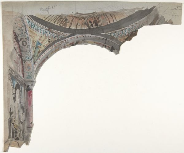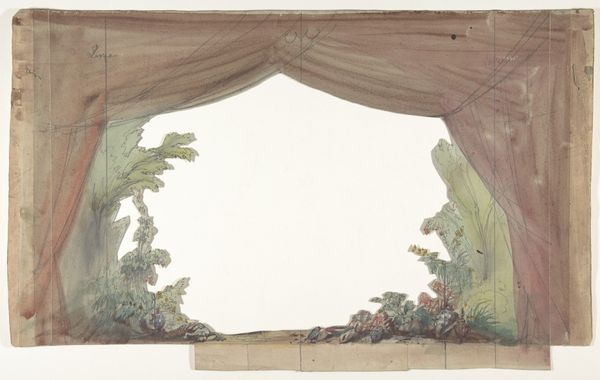 Eugène Cicéri made this design for a stage set using watercolor and graphite, and while we don't have an exact date for it, we can place it within the nineteenth century when Cicéri was working. This piece speaks to the cultural institution of theatre and the specific social rituals around dramatic performance in France. The heavy, draped curtain suggests opulence and grandeur. The drawing may at first seem a mere technical sketch but it speaks to the social meaning of theatre as a place of collective experience and social display. In nineteenth-century France, the theatre was a crucial public space where social classes mixed and national identity was performed and contested. The design of sets, like the costumes and the plays themselves, could reflect or challenge the values of the time. If we want to understand the role of such images, we need to consult theatre archives, playbills, and social histories of the period. Only then can we fully grasp the visual codes that were embedded in the artistic practice of set design.