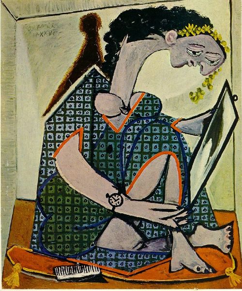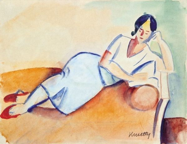 Henri Matisse created "Odalisque au coffret rouge" using an expressive application of paint to describe a reclining figure. The composition is defined by flattened planes of colour and simplified forms, which convey a sense of languid repose. Matisse's use of colour is striking. Note the interplay between the cool blues and greens of the background and the warmer pinks and oranges of the figure, creating a vibrant tension across the picture plane. The rhythmic arrangement of vertical stripes behind the figure introduces a dynamic contrast to the static pose of the odalisque. The spatial ambiguity in the painting challenges traditional perspective. Instead, Matisse uses colour and pattern to flatten the space, drawing attention to the surface of the canvas. This reflects a broader modernist concern with the autonomy of the artwork, emphasizing its materiality over illusionistic representation. Observe the confident, fluid lines that define the contours of the figure and objects; it is through line and colour that Matisse constructs his distinctive vision, inviting us to reconsider our understanding of form, space, and representation in painting.