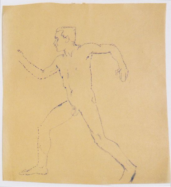 Editor: Here we have "Standing Figure," or "Stående figur," made between 1879 and 1910, by Oluf Hartmann. It's an ink and pencil drawing. It strikes me as incredibly immediate, almost a fleeting snapshot. What do you see in this piece? Curator: That immediacy is key. Considering the period, we need to understand how artistic institutions were grappling with new modes of representation. The rise of photography challenged painting's documentary role, pushing artists towards capturing fleeting impressions, emotional responses, and the raw energy of a subject rather than precise details. Editor: So, this is partly a reaction against more formal portraiture? Curator: Precisely. It reflects a shift in artistic focus toward conveying internal states and experiences. How does the stark contrast of the ink and the quick pencil strokes influence your reading? Editor: I guess it lends a sense of urgency and incompleteness. Almost as if it’s a figure in motion, a sketch capturing a passing moment that demands the viewer to complete the piece in their imagination. It has some real physical rawness! Curator: Exactly! And considering that many of Hartmann's other works involved landscapes, does the almost featureless blankness around this "Standing Figure" hint at it existing somehow free from or against society and its constraints? Editor: That’s fascinating! It is in the collection of SMK (Statens Museum for Kunst) so presumably its cultural import was recognized by the art establishment? Curator: Well, that's the interesting part, isn’t it? Museums themselves are products of their socio-political moment, canonizing some styles and overlooking others. Hartmann's embrace of rapid impressionism and perhaps a lack of commitment to established genre boundaries has implications on why he's collected and exhibited at different times, how he’s been publicly viewed, or, perhaps, how his contribution to Danish modernism went under-recognized. Editor: So, understanding its historical context adds so many layers! Curator: It really does open up so many lines of enquiry; not just the what and the when, but critically, the why and how of it.