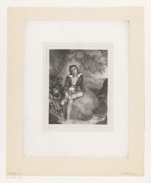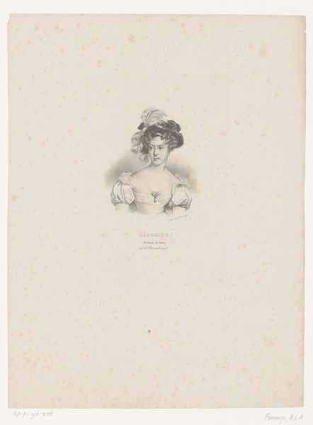 Curator: Looking at this lithograph from the 1850s by Jean Vincent Marie Dopter, it feels immediately mournful, doesn’t it? The pale greys and the ornate border seem to create an atmosphere of melancholy and respect. Editor: Indeed. The artwork presents "Portret van Louise Marie van Orléans, koningin van België." Considering the timeframe, we must look at how monarchy as a construct reinforces class and power structures and how that filters into our visual representation of such figures. Curator: Certainly, this portrait speaks volumes about the performative aspect of monarchy. Look at how she's presented. It's not merely a depiction; it's a construction of idealized femininity and power meant for public consumption. Her expression is controlled, suggesting piety, framed by an ornate border of angelic figures, furthering an almost saintly representation. Editor: Precisely. Consider the function of the Romantic style itself during this period. Its emphasis on emotion and individualism serves to ennoble her, diverting attention away from the realities of political power and toward the aesthetic of royal suffering and beauty. And lithography, a more easily reproduced medium, enables broader circulation of this carefully crafted image to promote the Belgian monarchy. Curator: That’s fascinating how the method of print allows a visual idea of Queenship to circulate, solidifying notions of Belgian national identity with Louise-Marie as its symbolic heart. The contrast between the queen and the cherubic, fantastical frame only emphasizes the rigid, yet celestial expectation of monarchy. This begs a question of performative burden and responsibility in constructing feminine icons. Editor: I agree; and thinking about audiences who were encountering these widely distributed prints: Did this image invite any public discourse? Did ordinary citizens find connection to these portrayals of a queen? Was she successful at solidifying the symbolic connection you speak of? The context surrounding production and consumption is paramount to assess visual culture from this moment. Curator: Absolutely. These questions about spectatorship show the intersectional ways art functioned then, but continue to be important questions now. What does it mean to revisit this work today, as our perception of power and gender is vastly different? Editor: Perhaps we view her not just as a queen, but as a woman caught in the intricate web of monarchical expectations, and then, how do we read and reflect on such expectations for those in power today.