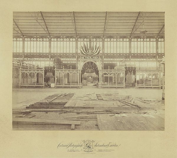 This photograph was taken by the Centennial Photographic Company in 1876, documenting the construction of the Dutch section at the International Exhibition in Philadelphia. The image shows a work in progress, a carefully arranged display of Dutch commerce and culture. The photographer made use of then-new industrial materials, such as the plate glass of the huge exhibition hall, and photography itself, of course, as a new means of mass communication. Note that the exhibition booth is being built from timber, sawn and assembled to create a convincing, but temporary display. Consider what it took to produce this image: the labor required to build the hall and the Dutch section; the workers who extracted the raw materials. This scene reveals the enormous amount of effort required to stage the fair. Even in its unfinished state, the photograph speaks volumes about the connections between design, labor, and the global economy of the late 19th century.