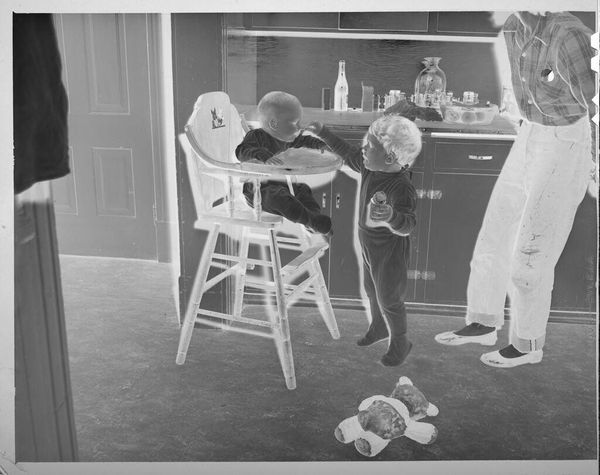 Paul Gittings made this small, untitled photograph of a woman and children. While the exact date is unknown, the image speaks volumes about gender and class expectations. Here, the woman, in what appears to be formal attire, is bending down to assist a young boy. The scene implies a domestic interior, perhaps a well-appointed home. The presence of a young girl, possibly being prepared for a formal occasion, suggests an affluent family. These visual clues invite us to reflect on the social dynamics of the time, where roles were often rigidly defined by gender and class. To fully understand this image, we can delve into the history of family portraiture and the evolving roles of women in the domestic sphere. Through such investigation, this seemingly simple photograph opens a window into the complex social fabric of its time.