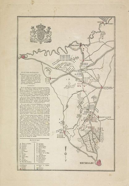 Editor: This etching, "Kaart van de aanval op Elmina, 1828" by H.W.A. van Rappard, depicts a military attack plan on what looks like aged paper. The drawing style, with the etching medium, lends the work a sense of documentary realism, despite the remove of time. What catches your eye when you examine it? Curator: Well, for me, the material speaks volumes. Look at the ink and paper - these were not neutral materials. The etching process itself, the labor involved in its production, tells a story of how information about colonial military operations was disseminated. How do you think the materiality of the map contributes to its meaning, especially considering the historical context of colonialism and the Dutch control over Elmina? Editor: It’s like the very creation of the map reinforces a kind of dominion over the space, because even making the map requires a command of materials and labor in and of itself. Curator: Exactly. The map isn’t just a representation of a place; it's a product of specific materials and processes reflecting particular power dynamics. Consider how the materials of map-making in 1828 might have differed from indigenous knowledge systems of spatial awareness. Where did van Rappard obtain the materials and skilled labor necessary for its execution? How was this map used and by whom, and how would these aspects influence its current presentation in a museum? Editor: I didn't consider the origin of the map itself being part of the colonial process, that production involves material choices that solidify meaning. Thank you! Curator: Absolutely. Considering art as a product deeply embedded in material and social conditions can profoundly change our understanding of its function and significance.