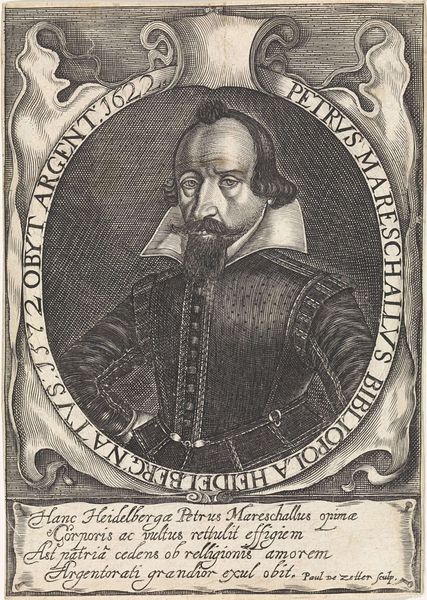 Juan van Noort created this engraving, Portret van Miguel Perez van Montesca, capturing the likeness of a distinguished gentleman. Miguel Perez's identity as a knight is clearly displayed by the frame surrounding his portrait, which makes a point of telling us he is Knight of the Habit, and General of the Artillery. Portraits from this period often presented their subjects in a formal and idealized manner, reinforcing social hierarchies and norms. Yet, the ornate frame and surrounding text which lists Miguel Perez’s titles almost undermines the visual representation. It amplifies the importance of social status and lineage in defining an individual’s worth, and hints at the rigid social structures of the time. The symbols used to frame the portrait offer an emotional tension, a contrast to the man's assured pose. Van Noort’s work is a window into the values of the 17th century, and it allows us to reflect on how identity and status are constructed and represented even today.