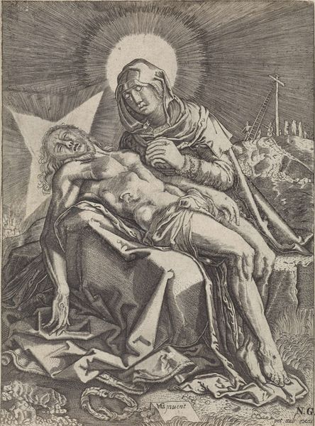 This section of the Isenheim Altarpiece was painted by Matthias Grünewald, around the early 16th century. Observe the Virgin Mary, cloaked in white, collapsing in grief, a scene brimming with symbols of mourning and lament. The white shroud is not just a color of purity, but of death. Note how Mary Magdalen clasps her hands, a gesture that echoes across centuries of art, representing anguish and supplication. Such gestures remind us of ancient Roman depictions of captured enemies begging for mercy. In medieval art, this evolves into a sign of piety and desperate prayer. Here, in Grünewald’s hands, it becomes a raw expression of sorrow. This motif reflects our collective subconscious, tapping into primal fears and sorrows. The image's emotional intensity isn't simply depicted; it is viscerally felt. The artist invites us to confront the depths of human suffering. The motifs are continually reborn in the human psyche, shifting and adapting to reflect our deepest emotions.