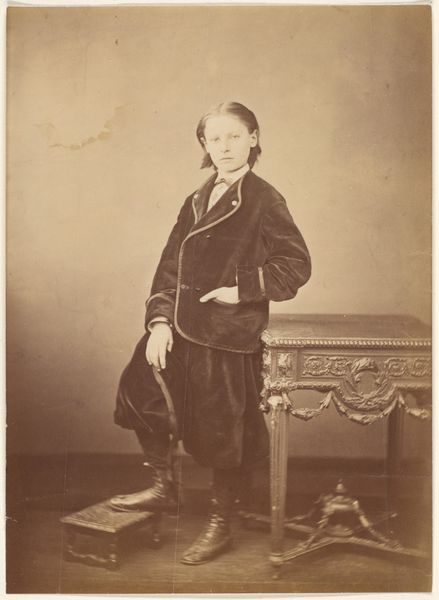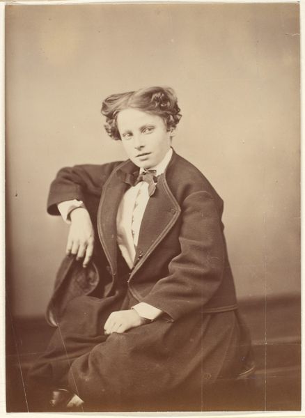 This albumen silver print, "Le Grand Russe," was created by Pierre-Louis Pierson, a French photographer active in the mid-19th century. He is known for his portraits of high society figures. The photograph depicts Countess de Castiglione, an Italian aristocrat and socialite celebrated for her beauty and influence. Here, she embodies an androgynous persona, challenging traditional gender norms. The Countess's attire, a masculine suit, and her relaxed posture subvert the feminine ideals prevalent in 19th-century portraiture. Her gaze, direct and self-assured, confronts the viewer, demanding attention on her own terms. Pierson's lens captures not just an image but a statement about identity, gender, and power. The photograph reflects the Countess's own agency in shaping her public persona, and simultaneously mirrors the complex negotiations of gender and identity during a period of evolving social norms. It's a moment frozen in time.