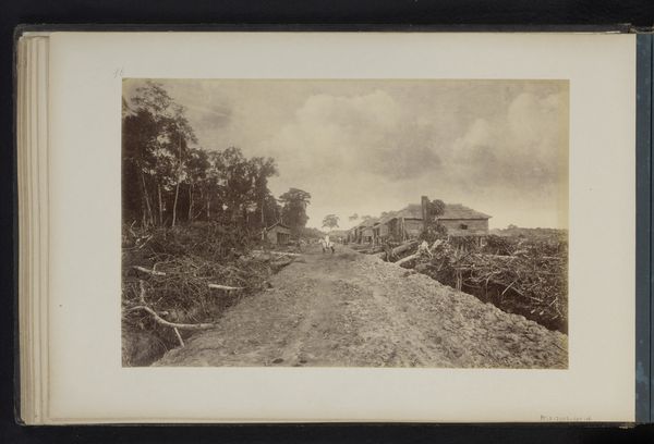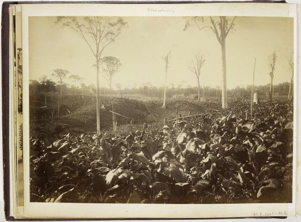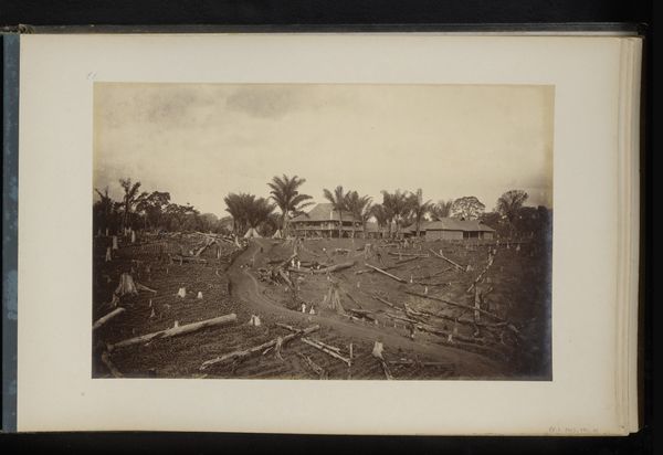 This photograph, "Gekapt oerwoud in Quali Mintchirim, Sumatra," was produced by Heinrich Ernst & Co. Notice the photograph’s composition. A leveled landscape, almost like a cleared stage, is divided into horizontal bands by the varying density and direction of the vegetation, which creates an immediate sense of depth. The subdued sepia tones, typical of early photography, contribute to a somber mood. The photograph presents a landscape altered by human intervention, a theme that echoes broader colonial narratives of the era. The act of clearing the forest can be seen as a form of imposing order, a visual metaphor for control and transformation. The ordered rows of felled trees challenge any romantic notions of the ‘untouched’ landscape, raising questions about representation, power, and the cultural encoding of nature. Consider how the formal structure of the photograph supports its content. The tension between the linear, disrupted foreground and the softer, more natural background encourages us to reflect on the complexities of human impact and how landscapes are both constructed and interpreted through the lens of cultural and economic forces.