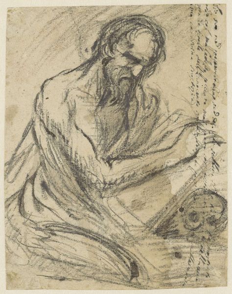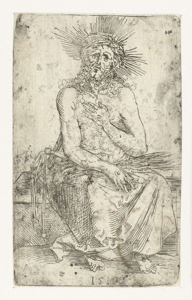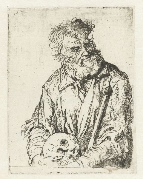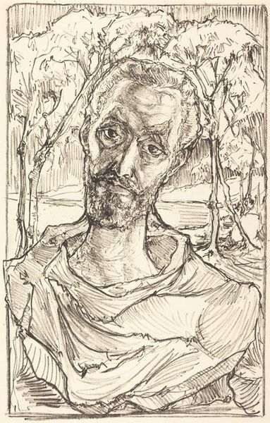 Editor: Here we have Tomás Joseph Harris's "Self-Portrait," likely an etching. The chaotic lines give it a sense of searching, like he's trying to find himself within the scratches. What do you make of this intense little image? Curator: Well, it feels like looking into someone's soul, doesn't it? The swirling lines… they remind me of those old theories about how our minds were like tangled webs. And the way he's rendered his own gaze – weary, perhaps, but unflinching. It's as if he's saying, "Here I am, in all my messy, imperfect glory." Don’t you get a sense of that vulnerability, that raw honesty? Editor: Definitely. The 'messy, imperfect glory' is beautifully put. But it's almost claustrophobic, with the lines so dense and the subject filling the frame. Is that intentional, do you think? Curator: Ah, claustrophobia as artistic intent. It is something you want to live with. It probably is! Perhaps he wanted to capture the feeling of being trapped within one's own thoughts. It could also be about the limitations of self-representation itself. Editor: So, a comment on how we can never truly know ourselves, or how an artist can never truly capture their own essence? Curator: Precisely! Or maybe it was a really bad hair day and he was feeling angsty! Who knows? The beauty is in the ambiguity. I love the man's commitment, a dedication only art could bring! Editor: I see what you mean. The 'flawed but honest' aesthetic really makes you connect with the artist as a person, not just an artist creating an image. Thanks for pointing that out. Curator: It was my sincere pleasure. Art whispers secrets to those who listen.