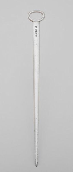 Curator: So austere, so practical... it’s whispering, ‘duty calls!’ Editor: Quite! What are we looking at exactly? Curator: This is a silver Schuurplank, a dishcloth holder crafted around 1730 by Willem van Strant. Editor: A dishcloth holder made of silver, what an incredible idea, in my wildest dreams, my dishcloth would never have imagined resting in something like this. It makes dishwashing sound terribly luxurious. Curator: In those days, even everyday objects were often made with precious materials. Silver wasn’t as wildly inaccessible as it is today for many households in the Dutch Republic. Consider it an aspirational statement, a reflection of rising merchant class and emphasis on home. It echoes a larger pattern: domestic life as an indicator of social and financial well-being. Editor: Interesting how an object as mundane as a dishcloth holder then becomes a tiny monument to larger cultural values. And speaking of monuments, look at the miniature flourishes: tiny Baroque details are added here on this small rectangle container. The contrast makes this work fun! What's your impression of its surface and patina? It appears that is a sculpture meant to be touched, but not as a work of art. Curator: Exactly! The surface tells a story, doesn't it? Not quite pristine, bearing those beautiful traces of handling, age, a visual echo of generations using it. Not displayed like some revered sculpture, but genuinely *used.* It also subtly mocks the heavy aristocratic aesthetic; its use diminishes any hint of ostentation. What do you think that contrast does to it as a whole? Editor: In its own way, its elegance hides. While there may be silverwork that demands attention through pure flashiness, this subtly subverts these assumptions. With the same materials that are commonly used, there comes a certain charm when witnessing art created without any intention of grandstanding! Its true aesthetic manifests when looked at a bit closer, after an inquisitive glance is exchanged with this humble dishwasher plank. I leave the discussion a bit more appreciative now! Curator: As do I. Thinking about how items shape and reveal our cultural and social ideas. I do not expect I will consider simple objects in such a perspective ever again!
