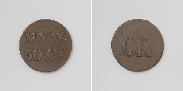 This house coin was minted by an anonymous artist for the Society of Welfare, holding a value of 25 cents. It was intended for use in the Ordinary Colonies. The letters "M.V.V.W." dominate the coin's face. These initials represent the "Maatschappij van Weldadigheid," or Society of Welfare. The symbolism of welfare as a collective societal responsibility echoes through ages. It's reminiscent of the ancient Roman concept of "alimenta," where the state provided for the welfare of children. Even today, we see the persistence of this motif in contemporary social programs. It's a fascinating cyclical return of the image of communal care. This coin is not just a token of monetary value, but a symbol of collective memory, a reminder of society's ongoing dialogue with its own moral obligations. The image subtly engages the viewer, prompting reflection on the psychological contract between individuals and their communities.