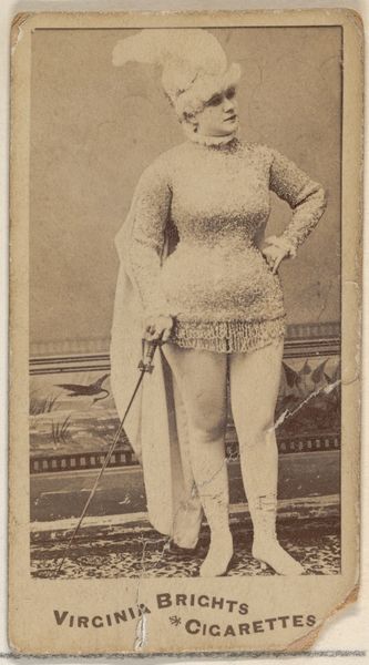 This is Irene Verona, a photograph from the Actresses series, made in the United States by Kinney Brothers to promote Sweet Caporal Cigarettes. The image provides a fascinating glimpse into the cultural landscape of the late 19th century and the ways in which images of women were consumed. This photograph, mass-produced as a promotional item, reflects the increasing commercialization of entertainment and the growing popularity of actresses as public figures. The pose, the styling, and the very act of circulation through tobacco products speak volumes about the socio-economic context in which this image was created. The institutional history of museums helps us to understand how an object such as this, originally a piece of commercial ephemera, comes to be valued and preserved as a cultural artifact. Understanding this image requires us to examine the social and cultural norms of its time, and to consider the role of institutions in shaping our understanding of art and culture.