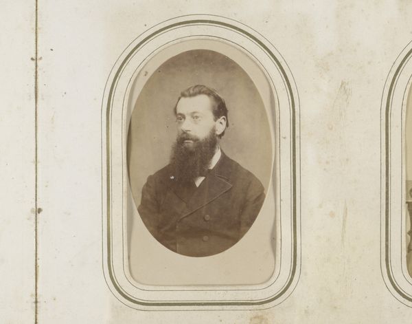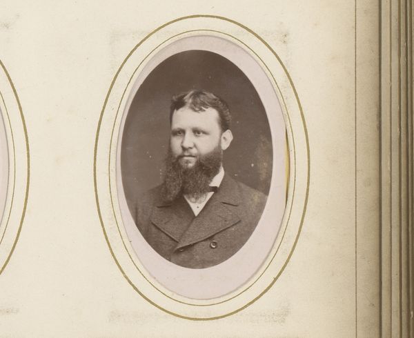 Editor: We're looking at a portrait of Ren Meyer, probably taken sometime between 1860 and 1900. It's an albumen print. The photo is a bit faded, which gives the image an antique quality. What strikes me most is the subject's serious demeanor, hinting perhaps, at a stern personality or the constraints of photographic portraiture at the time. How do you interpret this work? Curator: Looking at Ren Meyer, it's crucial to situate this image within the evolving landscape of photographic representation during the late 19th century. Portraiture was becoming more accessible, moving away from being exclusively for the elite, but gender, class, and race still largely determined who was depicted and how. Considering this, what narratives might this portrait reinforce, or perhaps subtly challenge, regarding masculinity and social status during that era? The serious demeanor, as you pointed out, could be indicative of societal expectations imposed upon men to project an image of power and authority, but is it truly devoid of nuance? Editor: I suppose his serious demeanor could mask other feelings but societal expectation plays an important role. It’s interesting how photography, while democratizing representation, simultaneously entrenched existing power dynamics. So this image is an important piece for discussion, and thinking about the historical context it brings to life. Curator: Absolutely. Thinking critically about the forces shaping representation—both then and now—is paramount. Ren Meyer’s portrait invites us to consider how visual culture reinforces or challenges prevailing social norms. As photography advanced, what responsibilities did the photographer and subject share in shaping the narrative of such images, especially within the confines of established norms and practices? Editor: That gives me a lot to consider in approaching similar portraits! Curator: And it also challenges us to recognize how our own biases influence the interpretation of such images.