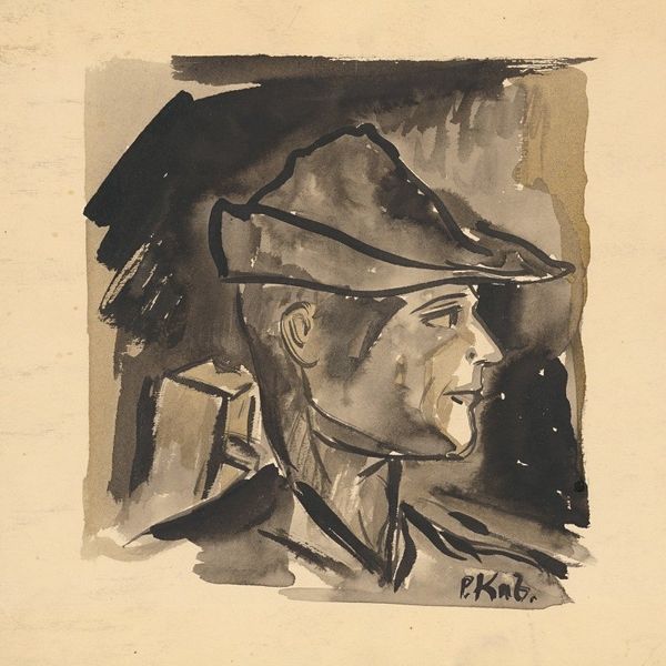 Editor: Here we have Walter Gramatté's "Self-portrait with a white face," painted in 1917 using oil paint. It’s a striking image, and the subject’s gaze is quite unnerving, isn’t it? How do you read this portrait, especially given its historical context? Curator: Indeed. Gramatté’s self-portrait, created during the First World War, powerfully reflects the trauma and alienation of the era. The pallid complexion combined with the military attire presents a stark tension. It begs the question: What does it mean for an artist to represent themselves in uniform with such a pronounced sense of dis-ease? Editor: It’s like he's stripped bare, even within the uniform. The whiteness of his face makes him appear vulnerable, almost ghostly. Is this a statement about identity during wartime? Curator: Precisely. The Expressionists often used distorted forms and heightened colors to convey psychological truths. Here, Gramatté seems to be challenging the romanticized notions of war, revealing instead a deeply personal experience of crisis. Consider how identity, especially for those marginalized or ‘othered,’ is often amplified or erased during times of conflict. Do you see how that tension might be playing out here? Editor: I do. It's like he's questioning his own participation in a system that demands conformity, even at the cost of his individual self. So the 'white face' could be about losing his identity? Curator: It is a symbolic gesture of resistance against the dehumanizing effects of war. By presenting himself with this ghostly pallor, Gramatté critiques the societal pressures to conform and highlights the internal struggles faced by many during this period. It is important to analyse not just individual experience but structural oppression and enforced assimiliation. Editor: That makes so much sense. It’s far more than just a portrait; it’s a commentary on the self in relation to the overwhelming forces of history and society. Thanks for unpacking that! Curator: Absolutely. Remember to always look beyond the surface and question the underlying narratives. Understanding the intersection of identity, power, and historical context will significantly deepen your engagement with art.