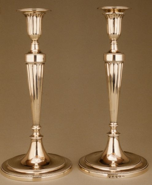 These compelling pricket candlesticks, now at the Metropolitan Museum of Art in New York, were crafted by Reinhold Vasters. Observe the structural interplay between the clear glass and the intricate gilded metalwork. Vasters meticulously alternates these materials, creating a rhythmic visual ascent. The fluted glass, divided by bands of gold, refracts light in a dance of transparency and opaqueness. Each segment, from the base to the pricket spike, is clearly defined yet harmoniously connected, suggesting a unity of form. The design embraces a kind of semiotic interplay where glass and metal speak to different symbolic realms—the ethereal and the earthly. This dialogue challenges fixed material associations, engaging with broader cultural ideas about value, display, and ritual. These candlesticks are not merely functional; they are dynamic objects which invite us to reflect on how visual form shapes and reflects our cultural values.