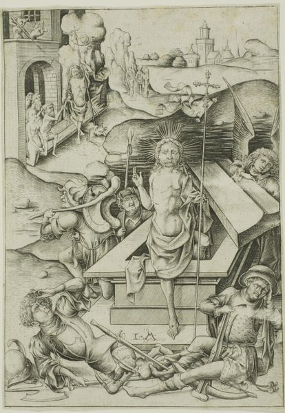 Jean Duvet created this engraving titled, 'Duvet Studying the Apocalypse', using black ink on paper. The composition is structured around a central arched form, guiding the viewer's eye through layers of detailed imagery, from foreground to distant cityscape. This contrast between textures and detailed linework creates a compelling visual tension. Duvet's approach reflects the complex interplay between text and image characteristic of the period. The figure of Duvet, a self-portrait, is surrounded by symbolic elements that challenge fixed meanings. The lines of sight and textual inscriptions weave a semiotic web, inviting us to decode the cultural codes embedded in the artwork. The use of perspective and spatial arrangement further adds to the dynamism. The artwork does not offer a singular interpretation. Instead, it invites ongoing interpretation and challenges us to reconsider established meanings. It acts as a site where the aesthetic and the philosophical converge, prompting us to explore how art can destabilize and expand our understanding of the world.
