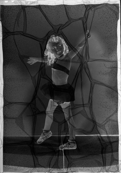 Curator: Oh, this piece just exudes a quiet melancholy, doesn't it? Editor: It does. Here we have an untitled photograph by Ken Whitmire Associates, depicting a little girl posing as a ballerina. It's part of the Harvard Art Museums collection. Curator: The pose is so studied, so deliberate, yet the girl's face is hidden, almost shadowed. It gives the image a sense of yearning. Editor: The image is layered and surreal. The dark netting draped around the girl's figure recalls the ways in which girls and women's bodies are often confined and obscured. The performance of femininity is complex and sometimes oppressive. Curator: I see what you mean. It’s a bit heartbreaking, this striving for an ideal imposed from the outside. A real gem, capturing such complex feelings in a single frame. Editor: It's an interesting capture. The work reminds us to reflect on the societal pressures and structures that shape young girls' identities.