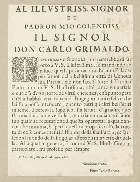 This page, created by Giovanni Battista Ciotti, showcases printing from around the 17th century. Its materials are simple: paper and ink, but the processes involved are intricate. Consider the physical labor that went into its production. Each letter was carefully carved into a block, arranged, and then pressed onto the page. We can see the pressure applied, the slight indentations left by the typeface. The ink itself, likely a mixture of soot and oil, had to be carefully prepared to achieve the right consistency. This wasn't just about mass production, it was also a social transaction. Printed books and pattern books allowed for the democratization of knowledge, influencing fashion and taste among different social classes. The dedication to a noblewoman, Gabriella Zeno, suggests the patronage system that supported such artistic endeavors. By examining the materials and the making, we can appreciate the complex interplay between craft, commerce, and social status embodied in this seemingly simple printed page.