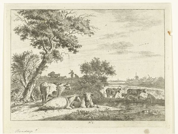 Francesco Bartolozzi made this etching called ‘Landscape with Fishermen,’ sometime in the late 18th century. It captures a scene of leisure and pastoral life, but it’s important to consider the social context in which this image was produced. Bartolozzi was working during a time of great social and economic change in Europe. The rise of the middle class and the growth of cities were transforming traditional ways of life. Landscape paintings like these were in high demand among wealthy patrons. They offered a vision of rural life that was idealized and nostalgic. The image creates meaning through its visual codes. The natural scenery refers back to classical traditions which emphasized beauty and harmony. The leisurely figures suggest the values of elegance and refinement, while ignoring the realities of rural life. As a historian, I would look into the history of printmaking and the art market to better understand the circulation and reception of images like these. In doing so, we can unpack the ways that art reflects and shapes social values.