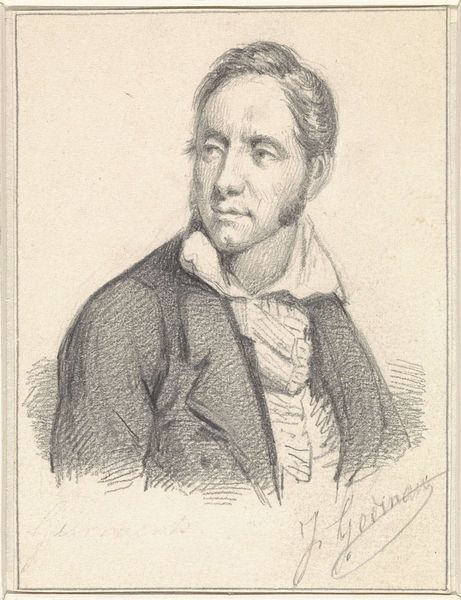 Coenraad Hamburger made this portrait of Josephus Jodocus Moerenhout with a pencil in 1848. It exemplifies the art of portraiture, and how it was interwoven with the social and political structures of the time. Portraits like these served not only as personal keepsakes but also as statements of social standing. The subject's attire reflects the fashion and social norms of the Dutch middle class in the mid-19th century, where one's clothing and appearance served as visible markers of status. Hamburger, the artist, occupies a significant position in the art world, because he had institutional affiliations with art societies in the Netherlands, especially in Haarlem. The work reflects the values and tastes of the institutions that nurtured it. The portrait is a product of its time and place, and its meaning can be further enriched through historical and cultural research. In scrutinizing this portrait we can begin to comprehend the power relations that shaped its creation and reception.