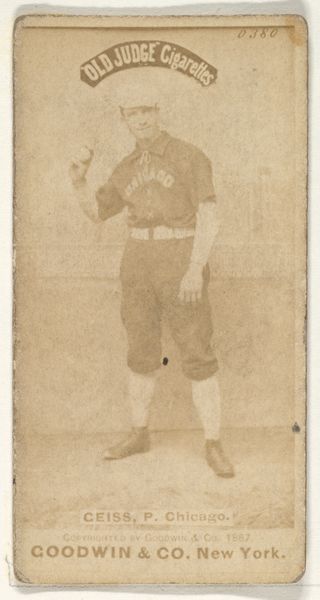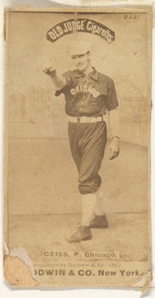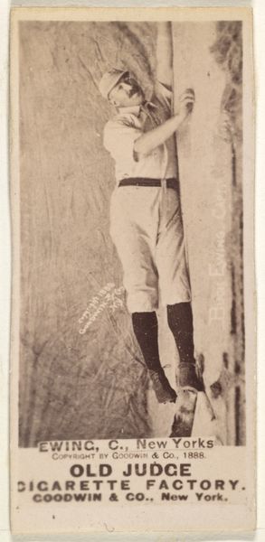 Editor: This is an untitled photograph by Lucian and Mary Brown, depicting a boy throwing a baseball. It’s a small, intimate image, almost dreamlike in its inverted tones. What strikes you about this piece? Curator: The materiality of this photograph speaks volumes. The photographic negative, a mass-produced item for the masses. Its inherent process of reversal, from light to dark, echoes the social inversions of labor; the unseen work necessary for leisure. Do you think that adds to its narrative? Editor: I think it does. It is almost like we see the inside out of things. Curator: Exactly. This negative also prompts questions about artistic collaboration in commercial studios and the often unseen labor behind the image. Editor: That gives me a lot to think about regarding how we value different types of art.