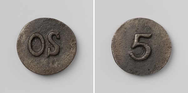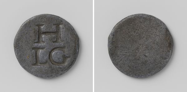 Curator: Here we have an engraving known as "Hersteld Lutherse Gemeente," dating from after 1791, crafted by Rensen. It appears to be a metal print. Editor: My initial thought? Austere. The cold metal, the stark lettering... it has the weight of authority, but also a sort of weary stoicism. Curator: That austerity, I think, reflects the context. The "Hersteld Lutherse Gemeente"—the Restored Lutheran Congregation—emerged from specific theological disputes and social pressures within the Dutch Lutheran community. This engraving would have circulated within that context, reinforcing identity and belonging. Editor: The letters “HLG” command the space and feel symbolic of the strength required of those seeking to restore or repair any faction. It makes me wonder about the emotional weight those letters held for members of that congregation. Did they serve as a rallying cry, a source of comfort, or perhaps even a reminder of past struggles? Curator: Exactly! These objects, even small ones, served as material culture anchoring their beliefs. Also, prints at that time played a crucial role in disseminating information and solidifying community identity during a time of shifting social structures and political landscapes. It solidified group membership. Editor: It’s fascinating how such a simple design can hold so much historical and emotional depth. It shows how we imprint meaning onto even the most commonplace objects. You know, this almost feels talismanic—something to carry as a reminder and a declaration. Curator: Indeed. When you look at it that way, these material remains offer insights into past struggles and victories and demonstrate community. They can even show social relations within the broader context of society. Editor: Thinking about the piece this way really humanizes it and gives me a greater appreciation for the struggles and beliefs represented by these historical factions. Curator: Agreed. It’s these connections that bring us closer to those who came before us and is proof of a lasting social impact through even seemingly minor objects.