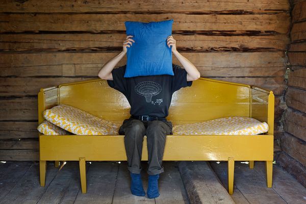 In Elina Brotherus's photograph 'Das Grüne Ohr', the model is captured wearing a button-down shirt, its deep green mirroring the single green earplug that gives the image its name. Light gently floods the attic room, illuminating the white walls and wooden floor, creating a subtle tension with the shadows lurking in the eaves. The textures here are muted – the soft fabric of the clothing, the smooth walls, the grainy wood – each element contributing to an atmosphere of contemplative stillness. It’s the earplug, though, that really grabs me. A small, almost comical intrusion of artificial colour, it disrupts the natural palette and invites a narrative. Is it a barrier, shutting out the world? Or a receiver, tuned to some unseen frequency? Like in the photographs of Candida Höfer, Brotherus frames a quiet moment of interiority, hinting at deeper emotional layers beneath the surface. We are left to wonder, and to listen for ourselves.