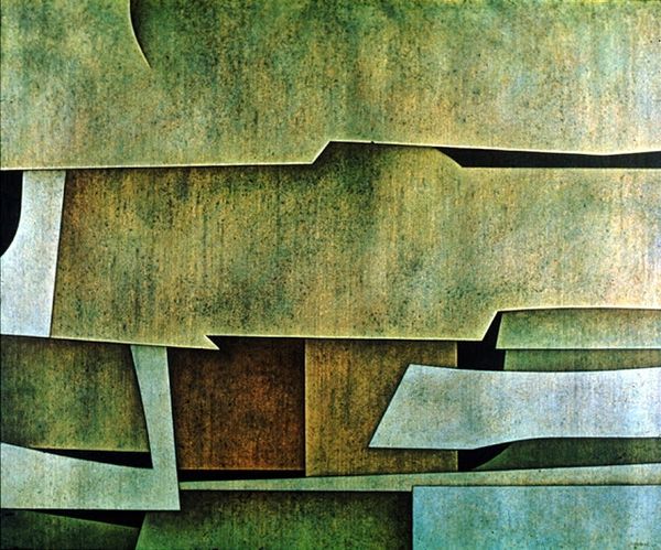 Gunther Gerzso built this painting, Estructura en gris y rojo, with oil paint, though when I look at it, I almost imagine it as a kind of relief sculpture. The colors and shapes feel like they're interlocking, pushing in and out of the picture plane. I love the way the surface has a kind of matte, almost chalky texture, especially in those large grey forms, hinting at something solid beneath the colors. Then there's that craggy, orange-red form at the center, like the broken surface of a planet, which really draws me in. It’s got these subtle cracks and ridges, like it's been through something. Gerzso's got this amazing ability to turn geometric abstraction into something deeply tactile. Looking at this, I'm reminded of other Latin American artists like Joaquín Torres-García, who also played with these ideas of structure and form. It’s a reminder that art isn’t just about what you see, but what you feel.