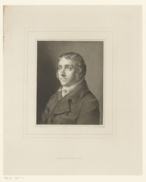 Curator: Here we have Louis Pierre Henriquel-Dupont’s "Portret van Alexandre Brongniart," created in 1850. The medium appears to be pencil drawing, though it's categorized as a print as well. What’s your first take on this image? Editor: An aura of reserved dignity. The sitter seems self-possessed. It almost conveys a kind of… melancholic resolve, doesn't it? But is he truly at ease, or burdened? The artist renders such palpable tension in his gaze and posture. Curator: Indeed. Neoclassicism favored portraying individuals with a sense of civic virtue and intellectual gravitas. Brongniart, the subject, served as director of the Sèvres porcelain manufactory for decades. This institution was once linked with royal privilege, so this artwork must carry complicated symbolism tied to pre and post revolutionary France. Editor: Absolutely. And there is something about this drawing's composition. It feels almost like a deliberate act of framing, carefully constructed to communicate the symbolic meaning associated with men in power during a period marked by socio-economic imbalances, right? I see echoes of the shifts in power structures in 19th-century France. Is Henriquel-Dupont being critical or complicit? Curator: Interesting question. Alexandre Brongniart helped revitalize the factory in the early 1800s, earning the cross of the Légion d'honneur, which is inscribed near his image on the print. Perhaps the cross alludes to ideas of nationalism and meritocracy that grew out of the revolution. Henriquel-Dupont worked from life and created the design as an engraving for Achille Collas. To me the tight cross-hatching emphasizes texture while embodying a classic restraint and formality of an earlier era. Editor: Restraint certainly seems to be the operative word here, especially when viewing Brongniart's composed demeanor and somber features against the broader canvas of the revolutions and changing social landscape of the 19th Century. To what degree were the symbols embedded in such artistic portrayals consciously deployed as part of shaping and communicating the power? Curator: Those symbols help encode lasting narratives and moralizing meanings, and allow the work to resonate across generations. I’m drawn to the work's historical positioning that captures societal changes via one man's image, while also creating a space to analyze how we’ve interpreted similar visual forms. Editor: Indeed. This dialogue, underscored by symbols of shifting values, reminds us that even a seemingly restrained portrait speaks volumes when situated in the right context.