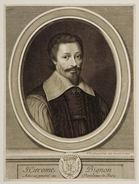 Curator: Immediately, the first word that springs to mind is "contained". There's something incredibly intimate about this piece, like holding a secret. Editor: That's an interesting observation, especially given its form. Here we have, from circa 1621, "Portrait of a Man" by Monogrammist IS, currently residing at The Metropolitan Museum of Art. It's rendered in oil, a medium lending itself well to the nuances we see here. Curator: The limited palette only enhances that sense of enclosure, doesn't it? The stark contrasts carve out such clear shapes and lines—I see determination in that jawline. And the dark suit! A silhouette. He seems so self-possessed, like a man secure in his status. Editor: Precisely! Notice how the formal arrangement—the symmetrical composition and unwavering gaze—contribute to that very impression. The circular frame too, of course, which creates a certain boundary, setting off the subject and reinforcing ideas around wealth and distinction. Curator: Absolutely, a visual declaration. I mean, it feels almost like a miniature stage, perfectly constructed to project an air of quiet confidence. I keep returning to his expression: a little coy, perhaps even secretive. I wonder what he’s not telling us. Editor: I would venture that it's less about what's withheld, and more about what is displayed. The meticulous lace collar, the slight smirk, it suggests a particular self-awareness, an understanding of performance and appearance, characteristic of the Baroque. The use of dark paint creates shadow. Consider how the semiotic signs are carefully deployed. Curator: It's intriguing to think about performance in a piece like this. In some ways, this small token becomes a meditation on the nature of representation itself. This quiet fellow embodies, somehow, a complex human performance. Editor: Ultimately, viewing this portrait has made clear to me the subject’s consciousness of image; its intrinsic connection to that moment in time when personal brand was a nascent, rising currency. Curator: I will definitely consider the personal-brand interpretation further. I think, however, it will continue to feel intensely private to me, a man held close. Editor: An astute interpretation indeed.