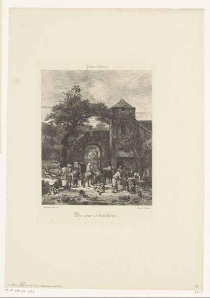 Curator: Ah, "Arco della Toretta o sia parte dell'acqua Claudia, agli Arci vicino a Tivoli" by Jacob Wilhelm Mechau, created around 1793. It's an ink drawing, a print of sorts. There's such a… wistful air about it. Editor: Wistful is spot on! The ruins looming, almost melting into the landscape, give off a sense of melancholic beauty, like a memory slowly fading. Curator: Mechau, typical of his time, was enthralled by the romantic allure of classical ruins. Tivoli, near Rome, was a hotspot for these artists drawn to antiquity. You see that overgrown aqueduct turned…folly? It really speaks to how the Enlightenment was reimagining its relationship with the classical world, or, dare I say, controlling it. Editor: Controlling, maybe, but nature has taken over in a dramatic, anarchic way. All that detail in the foliage and the wear of the stone! It contrasts nicely with the rigid geometry. It's a bit cheeky, like the natural world is gently mocking human ambition. Curator: Right! And think about how prints like this were circulated. These images helped shape public opinion, fostering both reverence for and, perhaps, a sense of superiority over the past. Art being at the forefront of popularizing architecture of the classical times Editor: Good point. So it wasn't just about aesthetic appreciation but also about cultivating a particular cultural identity in its modern socio-political landscape. Curator: Precisely. It is like art is subtly prompting people to reassess our understanding of architectural ruins within a larger dialogue of cultural continuity and, sometimes, rupture. Editor: Well, for me, the print creates a beautiful conversation between decay and endurance, ambition and humility, nature and our need to tame it. Always gives me something to think about, in the most unexpectedly moving ways. Curator: Agreed! It definitely captures a historical moment poised between admiring the old and forging the new. Fascinating.
