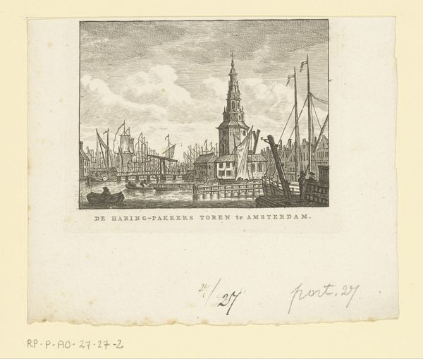 Hendrik Last made this print of the Ooster Oude Hoofdpoort in Rotterdam sometime in the mid-19th century. It’s a view of a cityscape that’s being looked back on with a certain amount of nostalgia. In the Netherlands during this period, there was a strong interest in national identity, and that involved celebrating local history and traditions. This print participates in that civic pride. Last's Rotterdam is defined by a bustling port, a trading hub, and a place where one finds a mix of old and new architecture. The Ooster Oude Hoofdpoort itself represents that old Rotterdam. This gate was not just a point of entry, but a symbol of the city's independence. The choice to depict it suggests an interest in preserving the memory of a bygone era. Understanding this print requires looking into archives, historical societies, and urban development plans. Each of those resources contributes a more nuanced understanding of Rotterdam's development and its place within Dutch national identity.