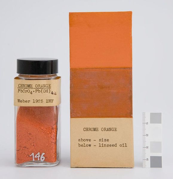 Curator: This is "Saffron From the dried stigmas of the Crocus Sativus," produced in 1928 by Cheney & Co. It appears to be saffron pigment mixed with Stixell, a casein glue, stored in a glass jar. Editor: Something about this image just exudes a dusty, forgotten laboratory. It’s oddly beautiful in its clinical presentation. Curator: Yes, it’s like a time capsule, preserving not just color but a moment in the history of pigment creation. Saffron, of course, has always been associated with luxury and vibrancy. Editor: That vibrant color is muted here, almost sepia-toned. It seems to embody the ephemeral nature of beauty, a potent symbol of time's passage, of memory itself fading. Curator: It also speaks to the material culture of art-making, those hidden processes. There’s something evocative about that simple glass jar holding such history. Editor: Absolutely. I think this humble presentation transforms the saffron into an almost alchemical substance, rich with artistic potential.