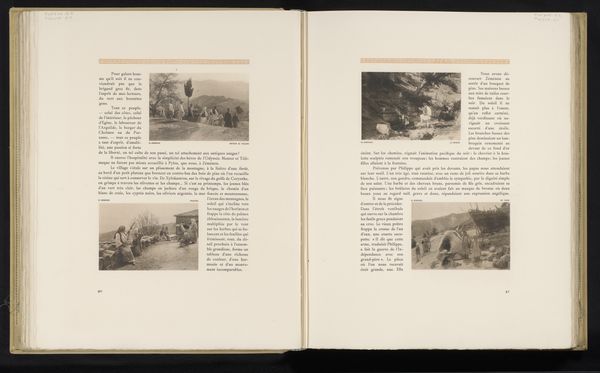 Curator: This gelatin silver print is entitled, "Schaapsherder met kudde bij de Eurotas, op de achtergrond de Taigetos," or "Shepherd with flock near the Eurotas, with the Taigetos in the background," and comes to us from photographer Fréderic Boissonnas, made before 1910. Editor: It's quite serene, really. A solitary figure tending his flock. The tones feel soft, almost dreamlike. And those mountains in the background, how vast. Curator: Boissonnas was a key figure in the Pictorialism movement. His work often evokes a classical past, reflecting the growing interest in ancient Greece at the turn of the century. His choice of a shepherd reinforces a sort of idyllic vision connected to a classical past. Editor: Interesting to consider how that intersects with labour. Shepherding, historically, isn't always seen through such a romanticized lens. This is hard work, made beautiful through Boissonnas's chosen process. And a gelatin silver print meant accessibility. These could be mass-produced to a certain extent and distributed, democratizing the artwork in some ways. Curator: Precisely. The gelatin silver printing process enabled a wider distribution of these images, spreading this idealized view of the Greek countryside and its inhabitants. It helped create and circulate a certain idea about what Greece represented – both historically and culturally. What does the production and display of such images do to further establish the mythology and legacies connected to Greece? Who is able to control and circulate such stories? Editor: Thinking about materials again: gelatin, often derived from animal byproducts. Is there commentary here on human/animal labor being introduced, maybe unintentionally? Even consumption—people had to consume and break down an animal, like those within the sheep's heard— to make such processes exist. How might our consideration of raw materials change the overall reception and consideration of this work? Curator: Absolutely. Analyzing this piece—or any work, really—forces us to grapple with complex histories: environmental, societal, labor. What Boissonnas wanted to be romantic could actually introduce the raw—the unglamorous aspects that made everything happen in reality. Editor: I came in initially captivated by the aesthetic of it all, but learning about its social and historical place and the materiality really reframes its perceived intent, maybe challenges it as a result. Curator: Yes, situating artwork within its historical context expands the discussion; it might even make space to consider new—more complicated, and thus rewarding—viewpoints.