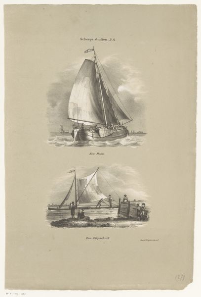 This print, "Amerikaanse en Nederlandse brik," was made by Johannes Cornelis van Pappelendam in the 19th century using a technique called etching. Etching involves coating a metal plate with a waxy, acid-resistant substance, then scratching an image into the wax. When the plate is dipped in acid, the exposed metal is eaten away, creating lines that will hold ink. This process is repeated to achieve the desired depth and detail. The material qualities of the metal plate and the acid bath influence the appearance of the print. The sharpness of the lines, the texture of the paper, and the tonal variations all contribute to the final image. Prints like these circulated widely in the 1800s and were critical to trade, exploration, and the projection of global power. The depiction of ships speaks to an emerging globalized world, fueled by maritime trade and colonial expansion. Prints like these were relatively inexpensive to produce, and were integral to shaping public perceptions of this new world order.