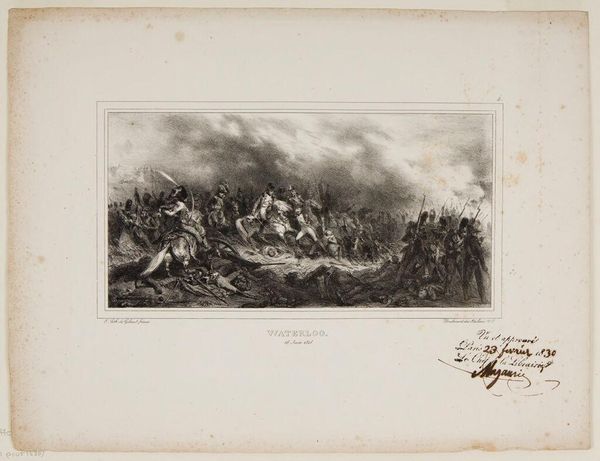 Curator: William Henry Worthington, an artist active in the late 18th and early 19th centuries, created this print called "The Defeat of the Spanish Armada." Editor: The scene is overwhelming. The churning sea practically spills out of the image, pulling you into the chaos of the battle. Curator: Note how the swirling smoke and aggressive waves almost become characters themselves, mirroring the conflict and high drama. The ships are merely vehicles for the drama being played out. Editor: And what about the engraver’s labor? The repetitive marks, the density of lines creating shadow, it’s a physical testament to the energy of the battle itself. This wasn’t a quick sketch; someone really wrestled with the material to evoke this intensity. Curator: Indeed, Worthington channels the collective memory of England’s victory. Symbolically, the image reiterates the triumph of Protestant England against Catholic Spain. Editor: The process, the tools used—they are themselves agents of meaning. This print speaks to a specific moment in history, filtered through the artist’s hand and the very materials of its creation. Curator: It’s a powerful reminder of how images can crystallize historical and cultural anxieties. Editor: Yes, leaving us to reflect on how we shape events through representation and the physical means of production.