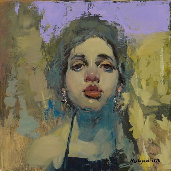 Editor: This oil painting, “Emily,” was created by Milt Kobayashi in 2021. There’s a raw, almost vulnerable quality to the portrait that really grabs my attention. What’s your take on this piece? Curator: Absolutely. This piece vibrates with the emotional intensity so central to Neo-Expressionism. The figure’s pose, hands clasped at her face, conveys introspection, perhaps even a sense of unease. Considering the date, 2021, what narratives of isolation, anxiety, or perhaps even resistance do you think the artist is tapping into? Editor: I hadn’t thought of resistance. Isolation, definitely, especially given the pandemic, but the resistance angle is interesting. The dark dress and red lips almost feel like a subtle defiance. Curator: Exactly. And consider Kobayashi’s practice more broadly; do you see resonances with other contemporary artists exploring similar themes of identity and self-representation through a critical lens? Artists who are dismantling traditional power dynamics? Editor: I see some echoes of Marlene Dumas, particularly in the way she captures the psychological weight of her subjects. The figure seems caught between wanting to reveal and conceal herself. Curator: Precisely. That tension, the push and pull, reflects the complexities of female identity, wouldn't you agree? Editor: Yes, the piece feels intensely personal while speaking to broader social anxieties. I like that. Curator: Art as a mirror and a lens – a space for individual stories to meet collective experiences. Thank you for your insights. Editor: Thanks! This gave me a lot to think about in terms of context and artistic intention.
