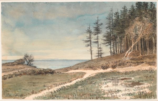 Carl Friedrich Heinrich Werner made this watercolor painting titled "View of Norba from the North, towards San Felice Circeo". Werner was working during a time of burgeoning interest in historical landscapes, fueled by Romanticism's emphasis on emotion and the sublime. The view captures the ruins of Norba, an ancient Latin city in Italy, set against the backdrop of the Tyrrhenian Sea. It is interesting to note how Werner’s choice of subject matter—ancient ruins—speaks to a broader cultural preoccupation with history, memory, and the passage of time. But this preoccupation was mostly the domain of wealthy white men on a ‘Grand Tour’. Look closely and you'll notice two figures positioned on the precipice. Their presence invites us to contemplate our relationship to the past and the landscape. The figures prompt questions about who is granted access to history and what perspectives are privileged in its interpretation. Werner's skill lies in evoking a sense of melancholy through the muted colors. This piece challenges us to reflect on whose histories are remembered, and by whom. The emotional weight of history becomes palpable.