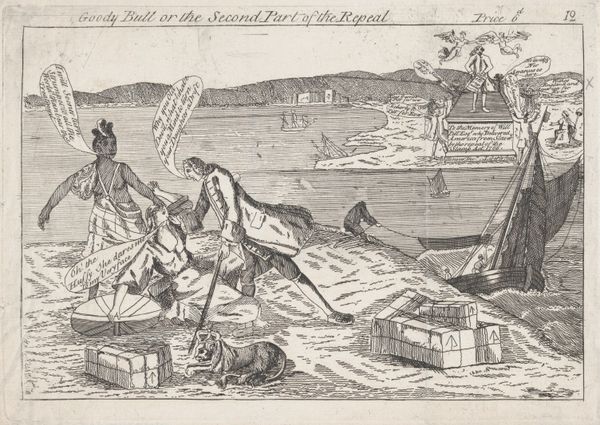 This engraving, "The Idle 'Prentice Turned Away and Sent to Sea," was created by William Hogarth. It's a scene dominated by the stark contrast between the chaotic energy of the left side of the boat and the solemn resignation on the right. The composition is divided, literally and figuratively, by the boat itself. On one side, frantic figures push the idle apprentice toward his fate, a tangle of limbs and expressions conveying a forced departure. In contrast, the apprentice rowing away cuts a solitary figure, his posture and gaze directed towards the distant ships, suggesting a mix of acceptance and isolation. Hogarth uses this division to explore the 18th-century societal values of industry versus idleness. The active expulsion highlights the consequences of failing to adhere to societal norms. Yet, the apprentice's quiet departure introduces a note of ambiguity. Is he being punished, or is he finding a new path, free from the constraints of his former life? The answer remains suspended, much like the boat itself, caught between shore and sea.