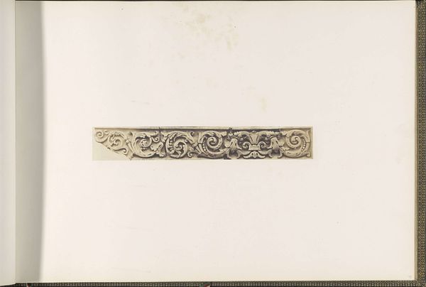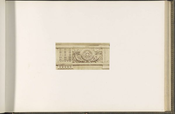 Editor: So, here we have a photographic print, a "Gipsmodel voor een friesversiering op het Palais du Louvre door Jean-Pierre Hurpin," created around 1855-1857. It's a plaster model for a frieze, intended for the Louvre. There's something so… removed about seeing architecture depicted this way, almost clinical. What stands out to you? Curator: The interesting thing here is to think about what Neoclassicism meant during that period. It wasn’t just an aesthetic preference; it was a declaration. This frieze, designed for the Louvre under Napoleon III, evokes the grandeur of ancient Rome to legitimize imperial power. How does a regime use cultural capital to build its authority? What does this tell us about the politics embedded within aesthetic choices? Editor: So the image itself is almost secondary, it's the intention behind the art being replicated here? Curator: Not quite, the photograph is useful here precisely because of its clinical nature. How can we interpret Baldus' photographic techniques in connection to this Neoclassical architecture? We see a detachment in the medium itself that speaks to power and ideology; what’s included, what's left out and how is that controlled? It’s about creating a very specific narrative, wouldn’t you agree? Editor: Yes, I can definitely see the power dynamics you're pointing out. The choice of Neoclassicism wasn't arbitrary, it was a conscious decision to align with historical empires. Curator: Exactly! It reminds us to question the narratives that architecture and photography, together and separately, construct. Editor: It makes me wonder about how different materials, like plaster and photographs, speak to authority too. It all fits together so powerfully! Curator: Indeed! And considering these power structures, how are women represented or silenced by such dominant architectural and artistic voices? Whose stories are we *not* hearing? Editor: That's something I'll definitely keep in mind. It shifts my focus from just admiring the aesthetics to understanding its political context.